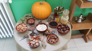 claro que el otoño ya está aquí. La mesa de la entrada de nuestro cole así nos